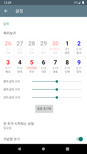 설정에서 간지를 on 하면 간지도 확인할 수 있다.