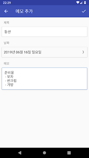 Main 화면에서 "+" 를 click 하거나 원하는 날짜에서 click 하면 memo 입력이 가능하다.